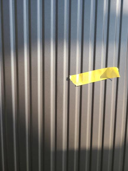 新築住宅、外壁ガルバの凹み補修です。
