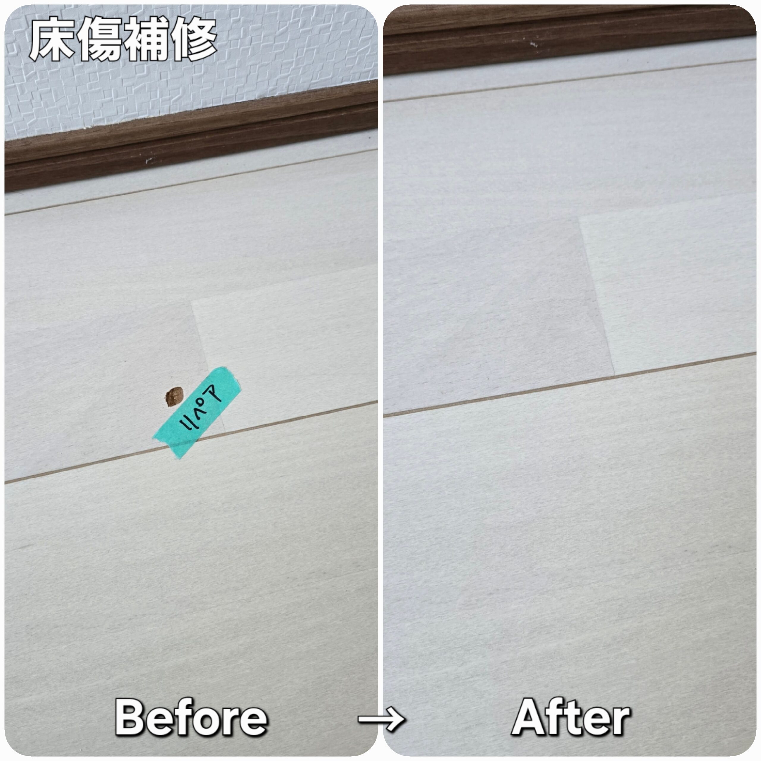 賃貸アパートの床傷補修です。