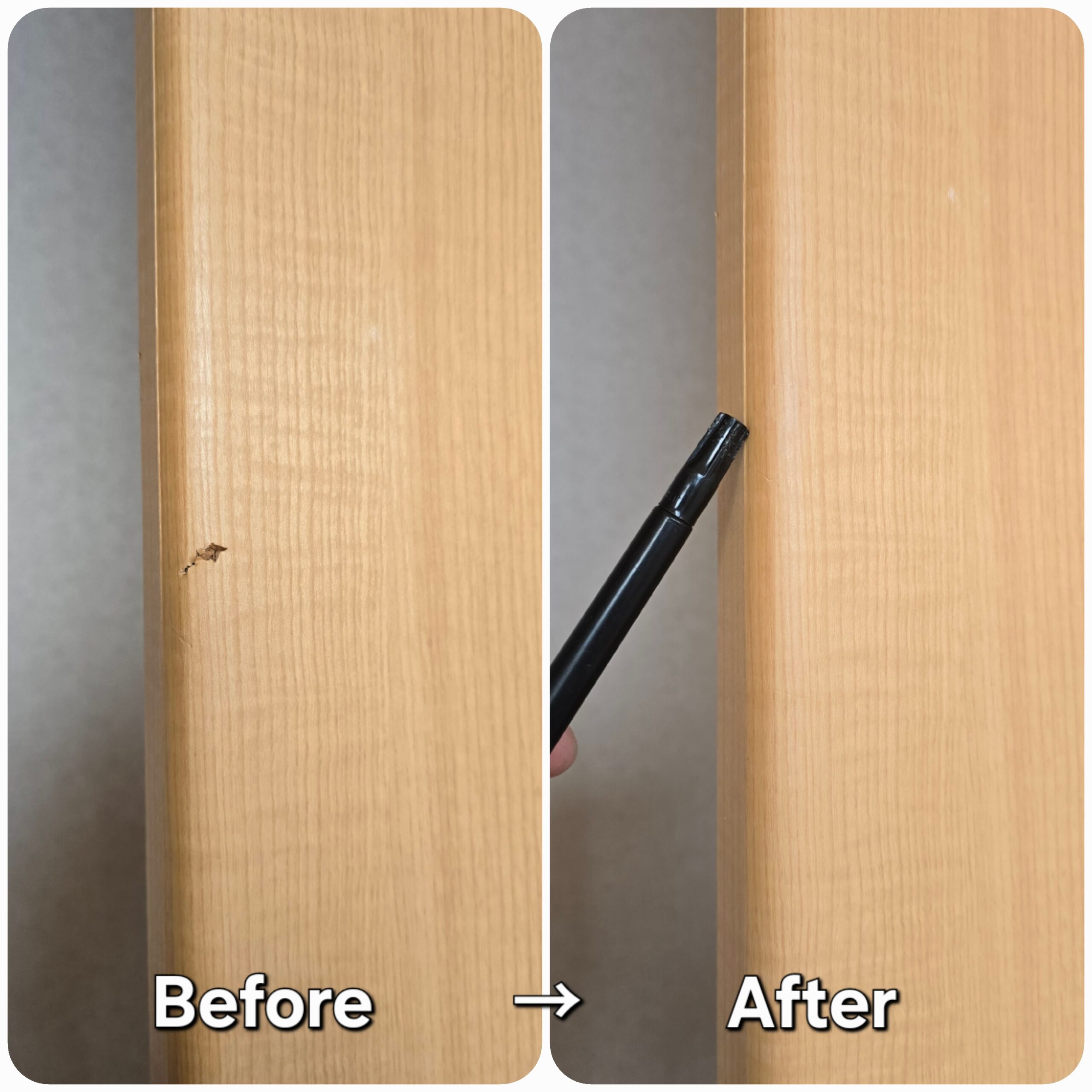 管理物件の建具・建具枠傷の原状回復リペアです。